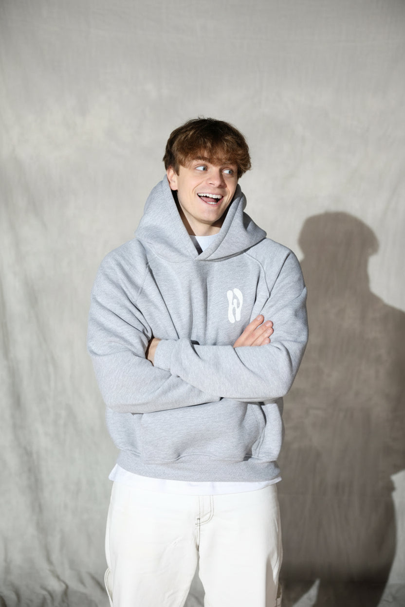 Szara bluza, która pasuje do wszystkiego tak dobrze, że prawdopodobnie zacznie rządzić Twoją szafą. Miękka jak pierwsza drzemka rano, a biały nadruk siedzi na niej tak pewnie, jakby wiedział, że jest tu gwiazdą. Zakładasz ją i od razu czujesz, że możesz przetrwać nawet najdłuższy dzień. To ten typ bluzy, którą zakładasz raz… i nagle wszystkie inne zaczynają wyglądać trochę zazdrosne.